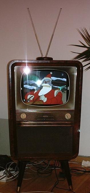 ... Damit der alte Stil erhalten bleibt gibt es einen, unter teilw. Verwendung der Originalteile aufgebauten stereo Röhrenverstärker Mit digitaler SAT-Karte ist nun wieder ein Fernsehempfang möglich (Aufzeichnung inclusive). Die inzwischen seltene, alte schwarz/weiß Bildröhre wurde möglichst sicher verpackt und ist im Keller eingelagert.