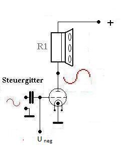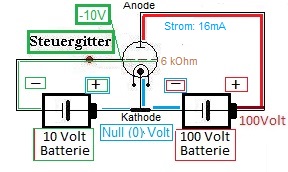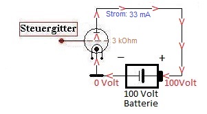 Das Steuergitter dieser Röhre soll dabei mit Minus, also 0 Volt verbunden sein.
