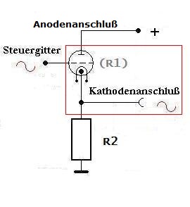 angewandten Widerstands-Reihenschaltung, bestehend aus Anodenwiderstand R1, Röhre und Kathodenwiderstand R2 quittiert die