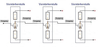mehrere Verstärkerstufen immer weiter verstärkt werden.