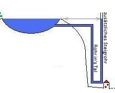 Wäre der Zustrom ab See nun plötzlich versperrt, liefert das Steigrohr ab dem Wasser ins Tal.