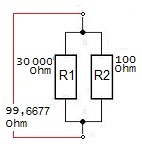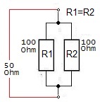 Sind R1 und R2 zufällig gleich groß, entspricht der gemeinsame Widerstandwert dem halben Wert eines Einzelwiderstandes.