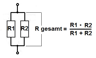 Sind R1 und R2 verschieden, ergibt sich ein Gesamtwert, welcher kleiner als der Wert des kleineren, der beiden Teilwiderstände ist.