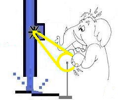 Besagtes Rohr ist nun am Boden mit einer Gummi-Kappe fest verschlossen. Entsprechend der aufgetürmten Wasserlast wird die Kappe, ähnlich einer Gummi-Mütze auch verschiedentlich weit durchgebogen.