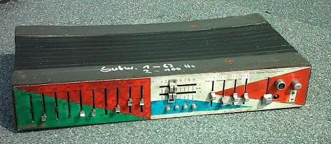 10 Kanal stereo Equalizer 1987 mit 3x2Kanal Mischer, Mikro-Vorverstärker + Klangregler und Abhörverstärker Der Equalizer wurde in den 90gern im Techno-Club "Das Haus" in Potsdam ohne Ausfall über Jahre hart beansprucht und ist innen daher etwas angestaubt.