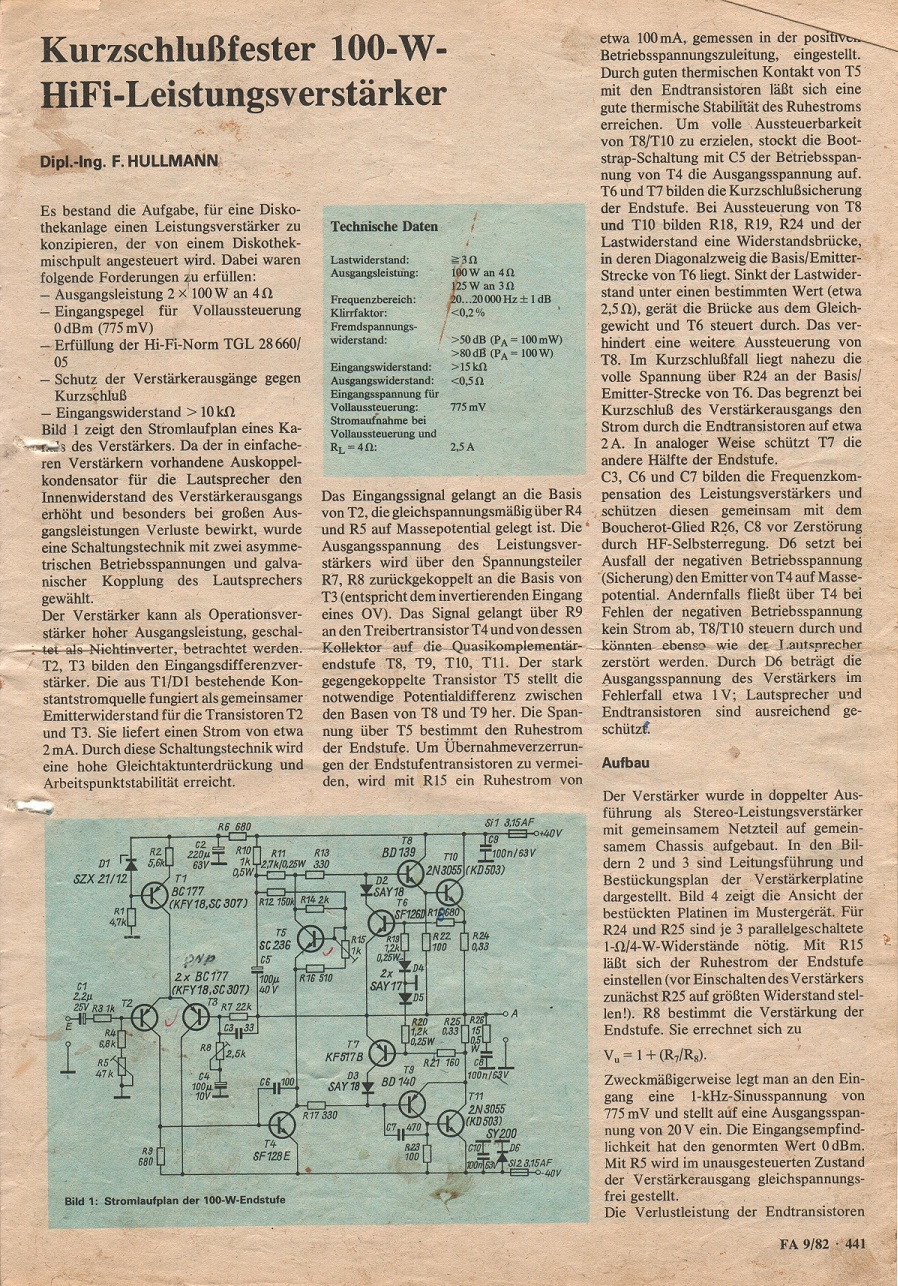 DIE Selbstbau-Option für DJ's im Osten ohne Westkohle: Der 100 Watt HiFi Leistungsverstärker / "Funkamateur 9/82":