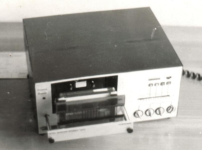Das s/w Foto ist von 1988 und zeigt den geöffneten Kassettenschacht. Der motorgetriebene Kassetteneinschub klemmt inzwischen, ansonsten ist das Gerät nach 20 Jahren immer noch funktionsfähig. -trotz des etwas chaotisch wirkenden Aufbau (Bild unten)